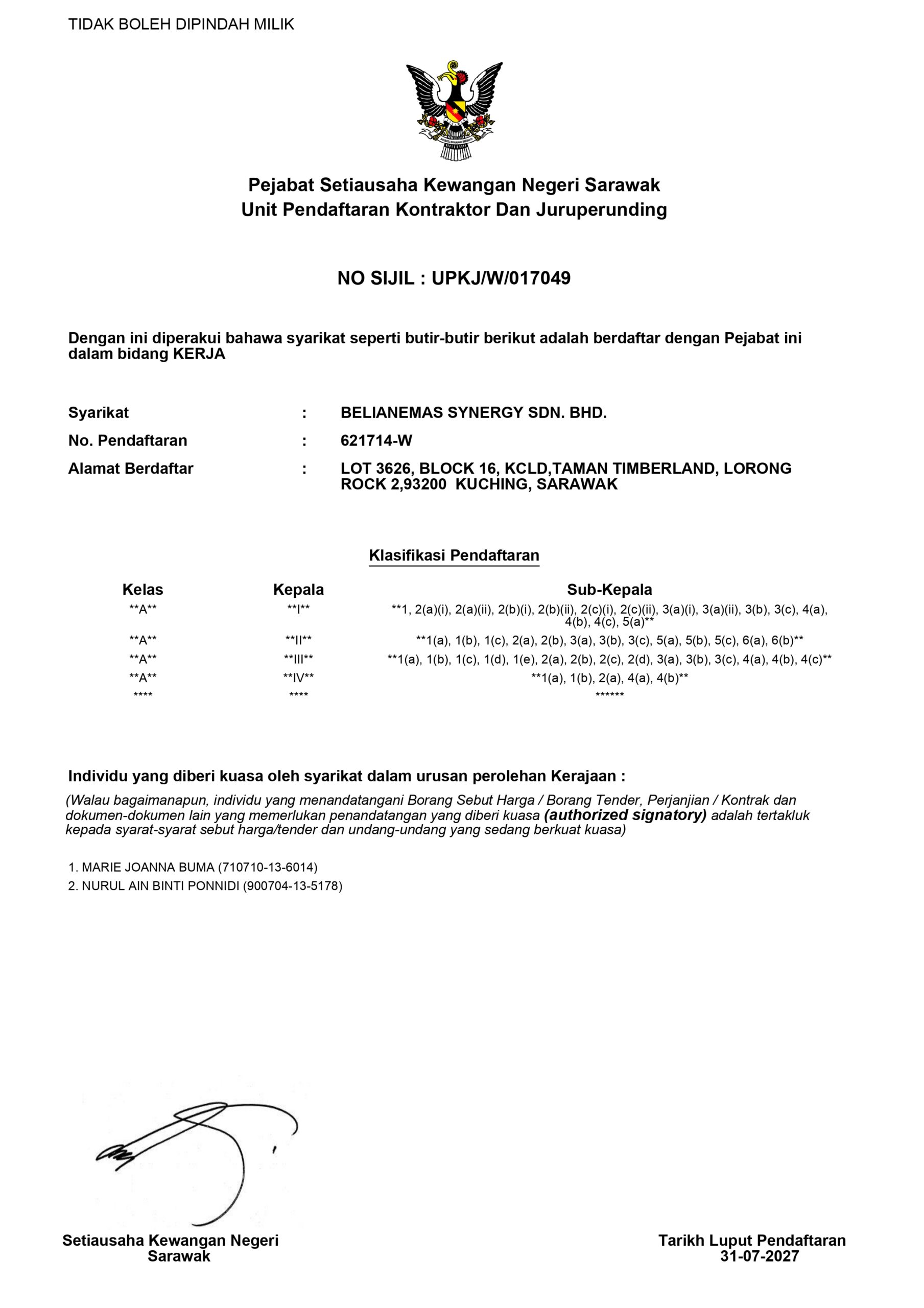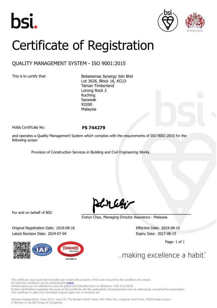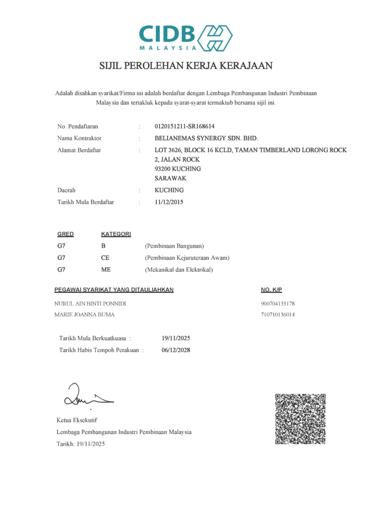 COMPANY LICENSES [ UPKJ Certificate ] [ Bumiputera Certificate ] [ CIDB Certificate ] [ ISO 9001:2015 Certificate ]